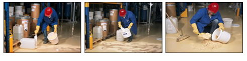 - Containment - Pour the absorbent around the outer edges of the spill. Once the spill has been contained, completely cover the inner area of the spill with Trivorex® Neutralising Absorbent.